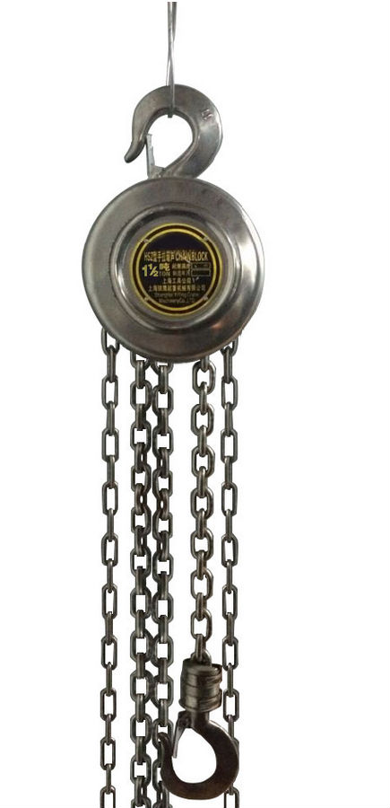 如果我们拉动链条时,发出异常响声,说明链条有可能发生变形或扭曲,这时我们应先将货物送到指定位置,然后再对链条进行检查,情况较严重时要进行更换。